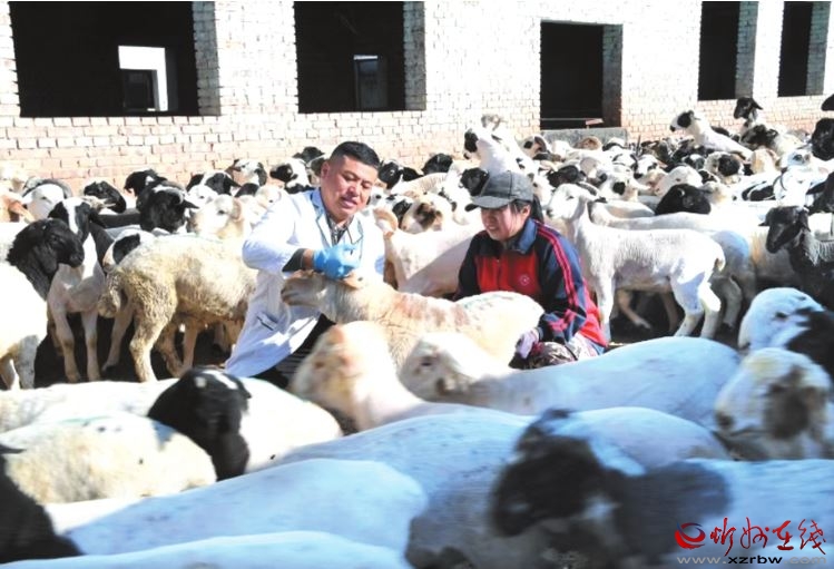 原平市子干鄉(xiāng)的趙全有是在國家政策扶持下成長起來的養(yǎng)羊?qū)I(yè)戶?!坝幸淮蜗卤┯?,我家的羊突然不進食了,試著給王老師打了電話,沒想到他冒著大雨,趕了二十多里山路來了!”趙全有告訴記者。診斷發(fā)現(xiàn)是飼料發(fā)霉引發(fā)的疾病,王興春立即指導更換飼料,直到羊群開始進食才離開?!皼]有王老師,就沒有我的今天?!壁w全有說。