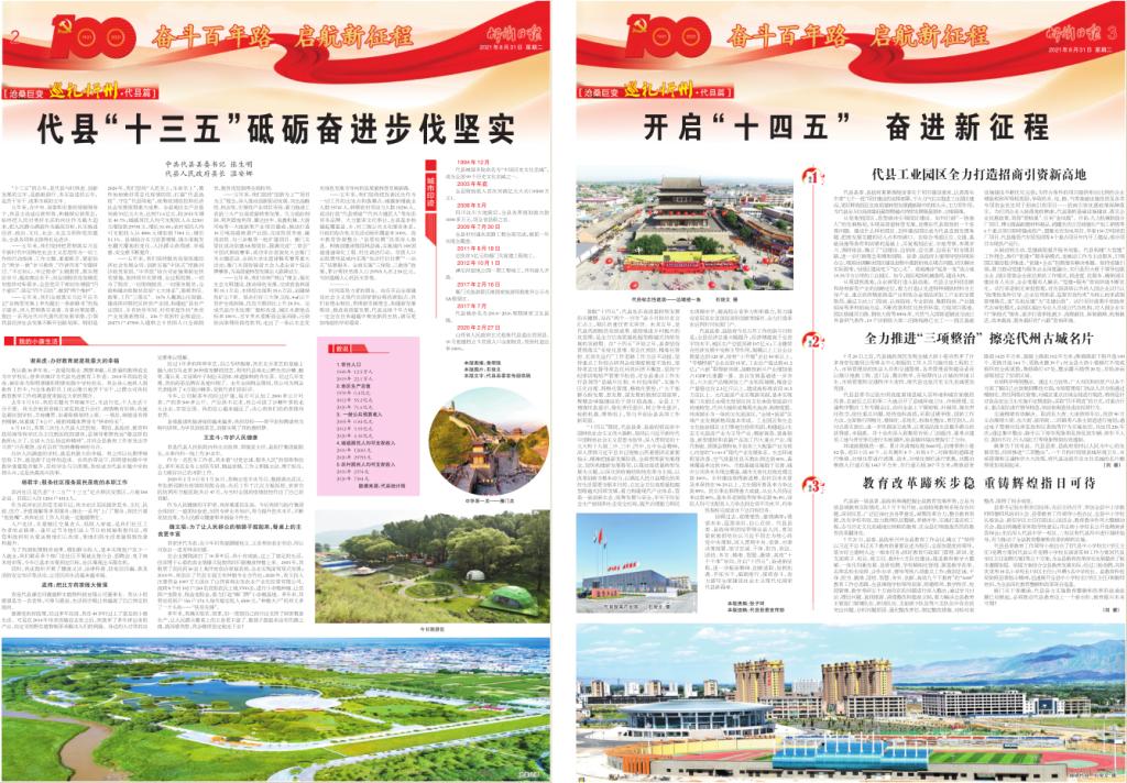 “十三五”的五年,是代縣與時俱進(jìn)、創(chuàng)新發(fā)展的五年,是砥礪前行、務(wù)實(shí)奮進(jìn)的五年,是苦干實(shí)干、成果豐碩的五年。