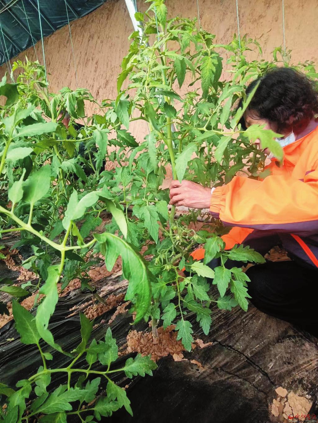 據(jù)了解,該大棚的管控依托于整個南作村周邊大田環(huán)境監(jiān)測設(shè)備對周邊環(huán)境的數(shù)據(jù)采集,利用風(fēng)速傳感器、風(fēng)向傳感器、雨量傳感器、太陽能土壤墑情數(shù)據(jù)采集,對土壤溫濕度電導(dǎo)率、土壤PH值傳感器中氮磷鉀信息進行實時采集。并配備了蟲情設(shè)備檢測儀器,通過太陽能蟲情測報燈、自動清蟲太陽能殺蟲燈、交流電殺蟲燈對大棚和大田的蟲情進行殺蟲處理。通過智能數(shù)據(jù)采集將大棚中的空氣溫濕度、光照強度、二氧化碳、大氣壓等信息實時導(dǎo)入管理系統(tǒng),根據(jù)其數(shù)值和農(nóng)業(yè)作物的數(shù)據(jù)需求,實現(xiàn)自動卷簾調(diào)節(jié)溫濕度。另外,根據(jù)農(nóng)作物的營養(yǎng)需求,應(yīng)用水肥一體化設(shè)備把營養(yǎng)液和預(yù)防藥物進行了自動化的管控,確保農(nóng)作物生長在健康的環(huán)境中,產(chǎn)出市民放心的蔬菜。圖為技術(shù)人員在察看番茄結(jié)果狀況。 (本報記者 李 濤攝)