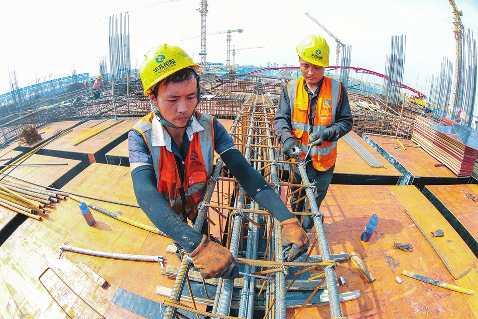10月1日,建筑工人正在運(yùn)城市會(huì)展中心項(xiàng)目建設(shè)工地做基礎(chǔ)施工。國(guó)慶長(zhǎng)假期間,承建總建筑面積82萬(wàn)平方米會(huì)展中心項(xiàng)目的運(yùn)城市建工集團(tuán)200余名建筑工人,堅(jiān)守施工一線(xiàn),嚴(yán)格按照時(shí)間表、路線(xiàn)圖,采取人休機(jī)不停的晝夜輪班制施工,確保重點(diǎn)項(xiàng)目的有序推進(jìn)。(姜樺攝)