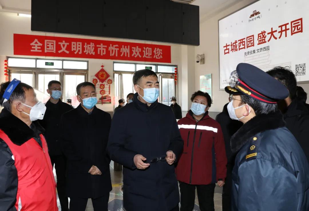 在忻州西站,李建國看望鐵路站場人員、衛(wèi)生防疫人員和社區(qū)志愿者,了解進(jìn)出站高鐵列車班次和人流高峰時間分布。他指出,防疫一線人員是疫情防控的“第一道防線”,要以崇高的職業(yè)使命感切實(shí)守好第一落點(diǎn)的防疫責(zé)任,不折不扣落實(shí)各項(xiàng)防控措施,嚴(yán)格排查篩查,有力、有序、有效做好站點(diǎn)疫情防控工作。要根據(jù)客流峰谷時段科學(xué)排班、合理調(diào)度、保證休息,要嚴(yán)格操作規(guī)程,做好個人防護(hù),為忻州筑牢衛(wèi)生安全屏障。