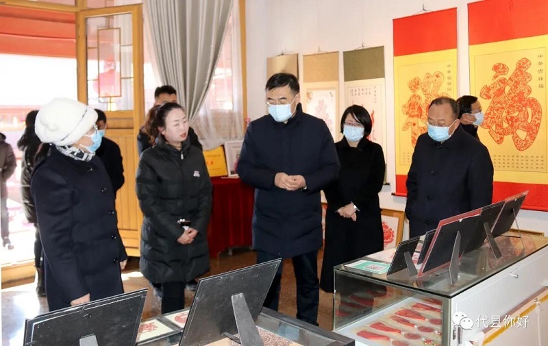 在代縣非物質(zhì)文化遺產(chǎn)展廳,李建國先后參觀了楊氏古建、望臺(tái)磚雕、雁剪閣、雁晶刺繡、藍(lán)花工作室、華嚴(yán)藝術(shù)世界、天順昌泥塑、曉玲面塑、葉玲瓏和雁繡坊等展廳。李建國與從業(yè)藝術(shù)工作者親切交談,希望他們不斷淬煉技藝,進(jìn)一步提升產(chǎn)品藝術(shù)價(jià)值,研究消費(fèi)對(duì)象的需求,借鑒南方和其它非遺研發(fā)發(fā)達(dá)地市的先進(jìn)經(jīng)驗(yàn),將產(chǎn)業(yè)做得更大更強(qiáng)。