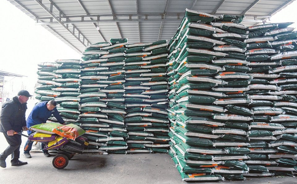 2月24日,長子縣清風(fēng)農(nóng)資連鎖有限責(zé)任公司院內(nèi),工人在搬運(yùn)化肥。隨著春耕生產(chǎn)臨近,該公司開通綠色通道,24小時不間斷作業(yè),加快化肥裝卸、轉(zhuǎn)運(yùn),全力保障春耕備耕。梁棟攝