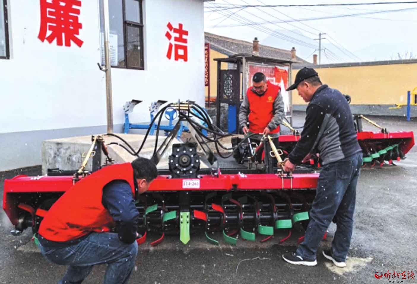 工作隊員與農(nóng)機技師一起仔細檢查旋耕機等設備的零部件、傳動系統(tǒng)及液壓裝置,排查隱患,調(diào)試機械性能,確保農(nóng)機以最佳狀態(tài)投入春耕。隊員們還向農(nóng)戶講解農(nóng)機日常保養(yǎng)知識,提升村民科學使用農(nóng)機的能力。(曾 陽 攝)