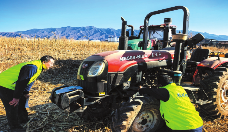 技術(shù)人員正對拖拉機(jī)進(jìn)行全面“體檢”。 郭婧蕾攝