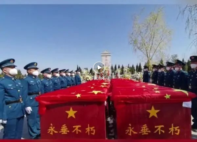 天空云低,蒼柏低垂。一首《思念曲》,帶來陣陣哀思,深沉低回,覆蓋著國旗的16位烈士的棺槨由禮兵緩緩抬入陵園,莊重地擺放在紀(jì)念碑前。全體人員手握鮮花莊嚴肅立,祭奠忠魂,向為國捐軀的革命烈士表達深切哀思和無限敬仰之情。禮兵護送烈士靈柩到指定墓位安葬,參加儀式的全體人員向烈士獻花,生長于這片土地的英雄,將在此長眠。