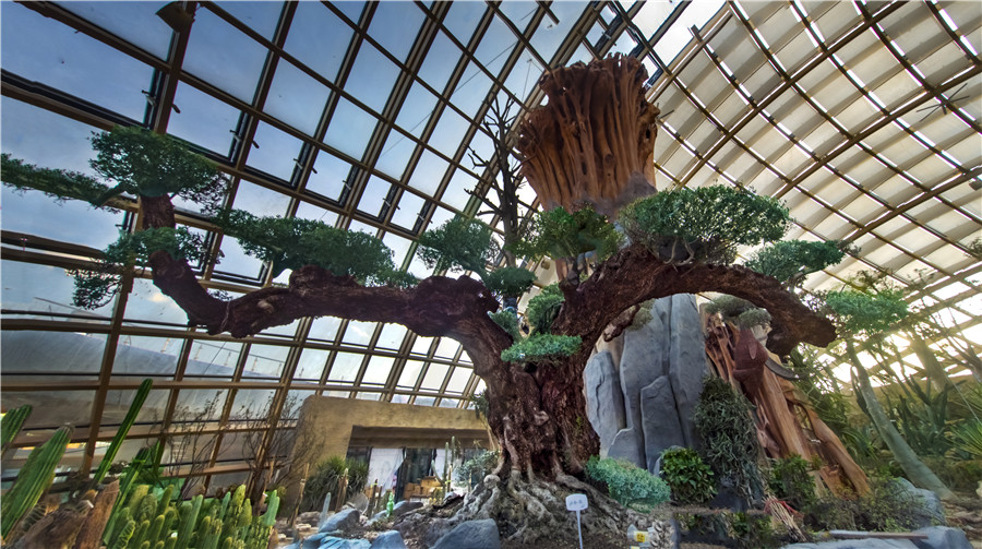 黃河新聞網訊(記者 劉亞男)“這里是國內首個采用膠合木結構的大型展覽溫室,也是國內目前已建成跨度最大的膠合木結構建筑結構。由木網格組成的溫室穹頂,分段間距并不均勻,因其設計新奇,施工難度大,是唯一獲評全球最佳項目的中國項目?!敝参飯@相關負責人介紹。