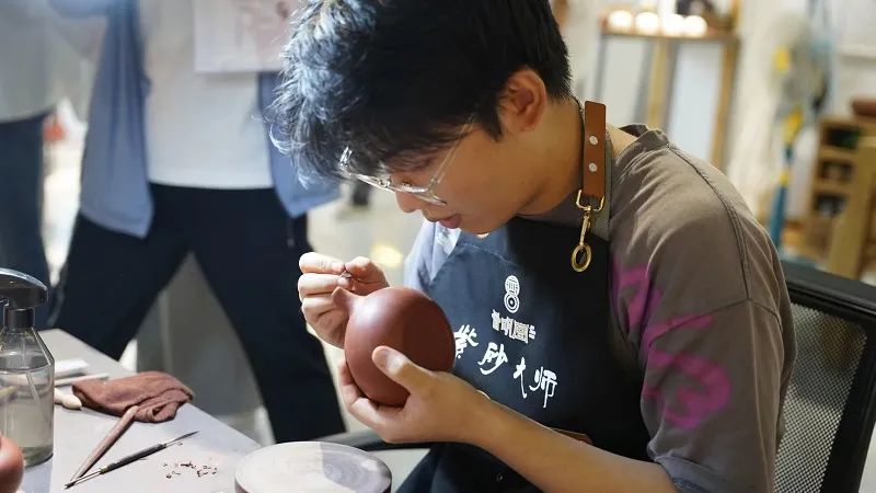 在砂器(紫砂)文化示范區(qū)的山西晉明堂文化科技有限公司(以下簡(jiǎn)稱晉明堂),一位年輕人正熟練地運(yùn)用各種工具給手里的紫砂壺進(jìn)行壺嘴部分的制作。他叫穆清,今年剛20歲出頭的他,耳濡目染父親對(duì)紫砂文化的熱愛,也對(duì)這一行業(yè)產(chǎn)生了濃厚的興趣,決心將平定紫砂文化傳承發(fā)揚(yáng)下去。