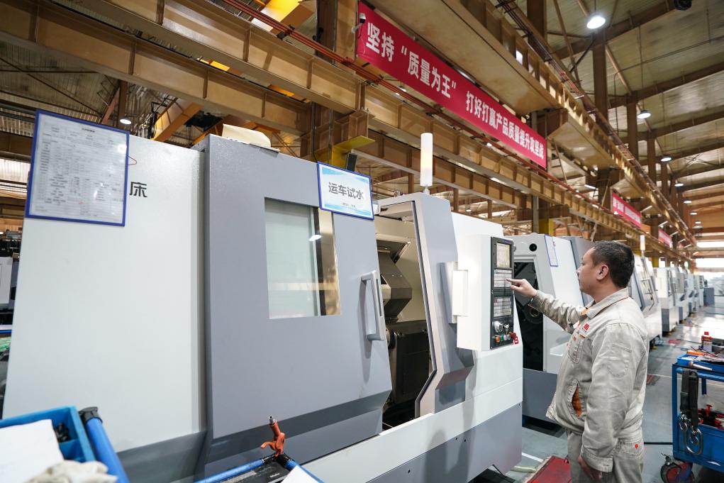通用技術(shù)集團(tuán)沈陽機(jī)床的工人在車間工作。新華社記者潘昱龍 攝