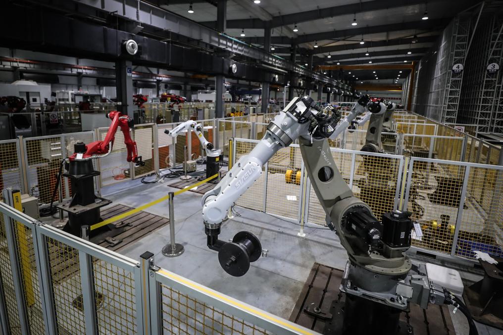 圖為沈陽新松機(jī)器人自動(dòng)化股份有限公司生產(chǎn)車間。新華社記者潘昱龍 攝