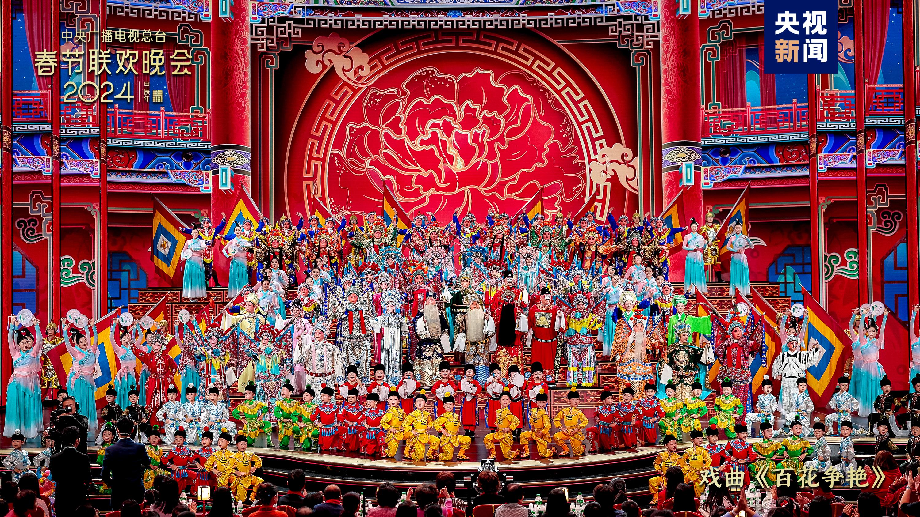 戲曲節(jié)目《百花爭艷》中,老少中青群英會(huì),演繹百萬金戈鐵馬、千年戀愛傳奇,國家級非物質(zhì)文化遺產(chǎn)潮劇首次在總臺(tái)春晚舞臺(tái)綻放華彩。雜技《躍龍門》結(jié)合競技體育項(xiàng)目“蹦床”和雜技“浪橋飛人”,表現(xiàn)出奮勇向前、更上層樓的干勁闖勁。陜西西安分會(huì)場全民齊誦詩詞歌賦,恢宏大氣的《山河詩長安》令人詩情澎湃、暢懷無限;多民族載歌載舞、共賀新春,新疆喀什分會(huì)場的《舞樂新疆》節(jié)奏歡快氣氛熱烈,展現(xiàn)石榴籽一樣緊緊抱在一起的各民族一家親。