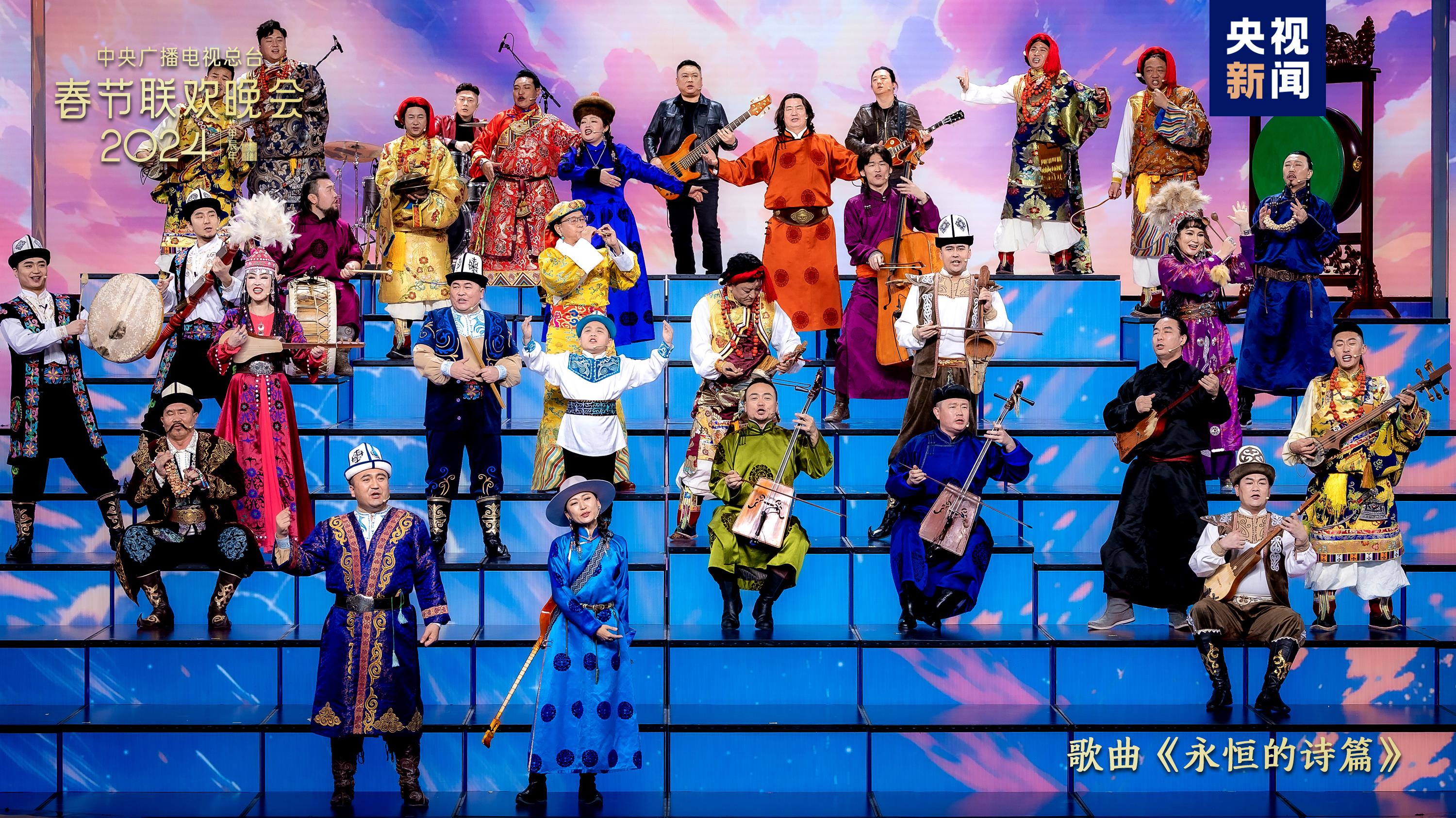 同根同源、同心同愿。歌曲《禮序》中,古巨基、蘇有朋、宋佳、麥嘉欣與來自海峽兩岸暨香港、澳門的小朋友們通過“禮”這一中華民族共通的文化符號,唱出攜手同心、共赴團(tuán)圓的美好期許?!队篮愕脑娖穫鞒聽柨俗巫?、蒙古族、藏族的民族史詩,蒼勁有力,響徹廣袤大地,書寫遼闊土地上的生生不息。