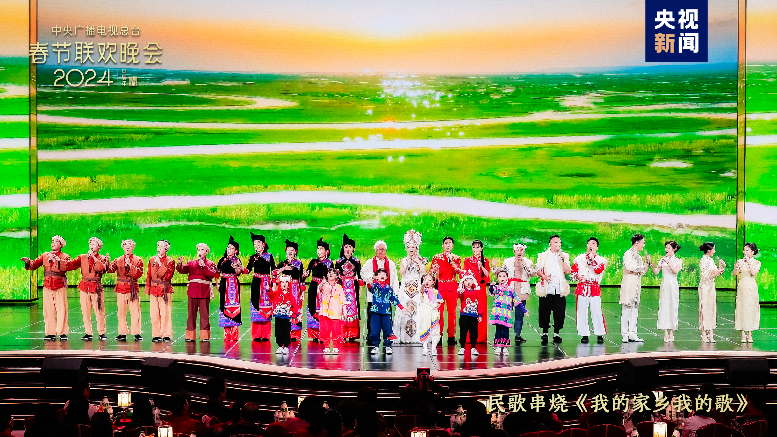大江南北共歡騰。今年春晚北京主會(huì)場與遼寧沈陽、湖南長沙、陜西西安、新疆喀什四地分會(huì)場節(jié)目氣韻貫通,國潮表演、歌舞說唱、器樂演奏等節(jié)目形式與地域特點(diǎn)巧妙融合,熱潮一浪高過一浪。民歌串燒《我的家鄉(xiāng)我的歌》集納《太陽出來喜洋洋》《采茶舞曲》《山歌好比春江水》《誰不說俺家鄉(xiāng)好》等眾多經(jīng)典民歌,耳熟能詳?shù)男擅枥L出山河錦繡的幸福年景。