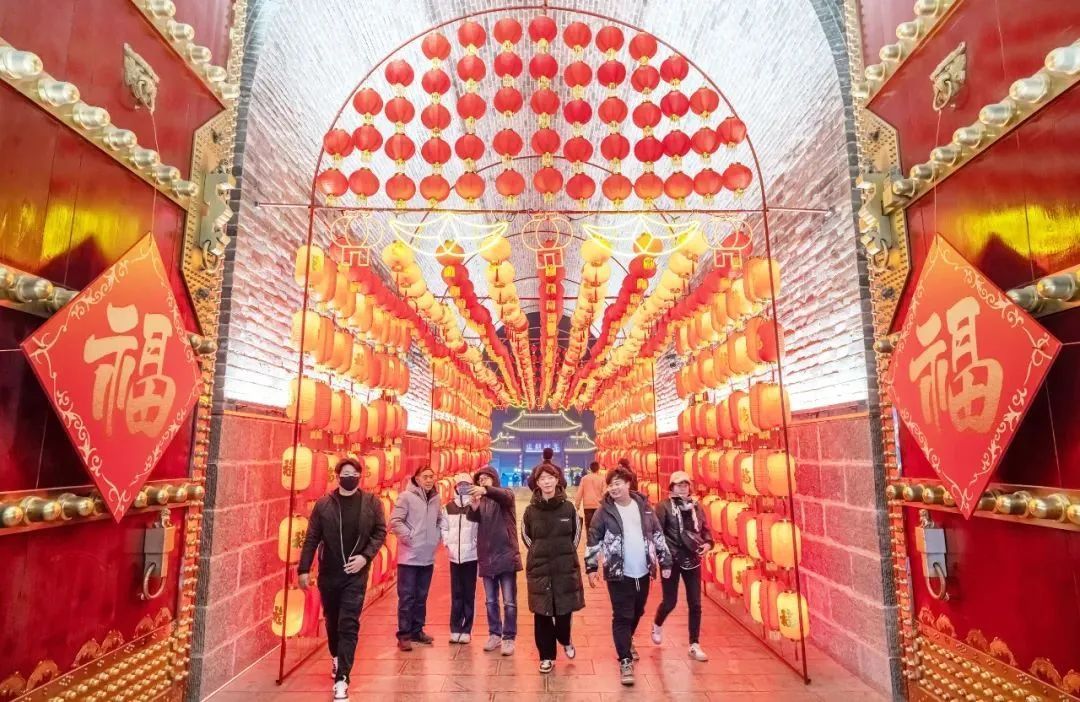 在晉城,陽(yáng)城縣各廣場(chǎng)、公園、街道處處張燈結(jié)彩,人們?cè)跐鉂饽晡吨斜M情游玩,樂享春節(jié)假期。