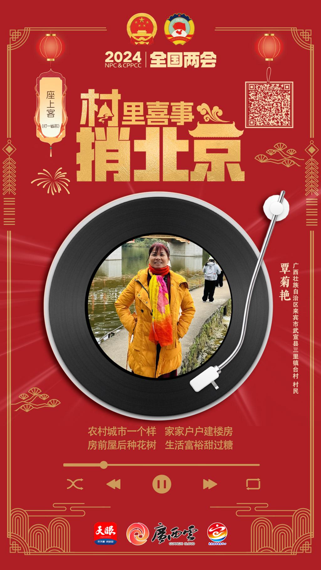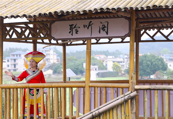 廣西壯族自治區(qū)來賓市武宣縣三里鎮(zhèn)臺(tái)村村民覃菊艷用歌聲唱出了如今的美好生活
