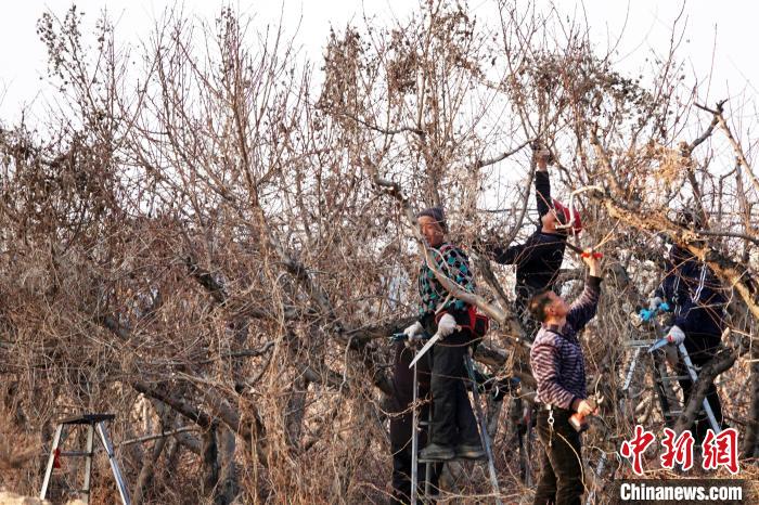 桃農(nóng)正加緊修剪清理油桃樹(shù)上的枯枝。高新生 攝