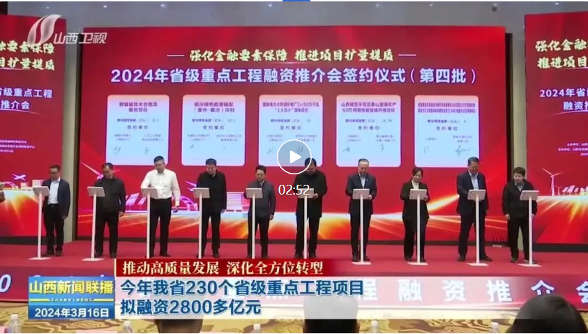 今年全國兩會,《政府工作報(bào)告》明確提出“積極擴(kuò)大有效投資”。3月14日,“強(qiáng)化金融要素保障 推進(jìn)項(xiàng)目擴(kuò)量提質(zhì)”2024年省級重點(diǎn)工程項(xiàng)目融資推介會在太原舉行,拉開了今年金融機(jī)構(gòu)與重大項(xiàng)目交流對接的序幕。詳情請點(diǎn)擊視頻