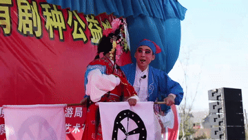 陽(yáng)春三月,在太原古縣城,一出太原秧歌《劉三推車》正在生動(dòng)上演,“農(nóng)夫”和“小仙女”在臺(tái)上一唱一和,游客們?cè)谂_(tái)下和著春風(fēng)看得入迷。