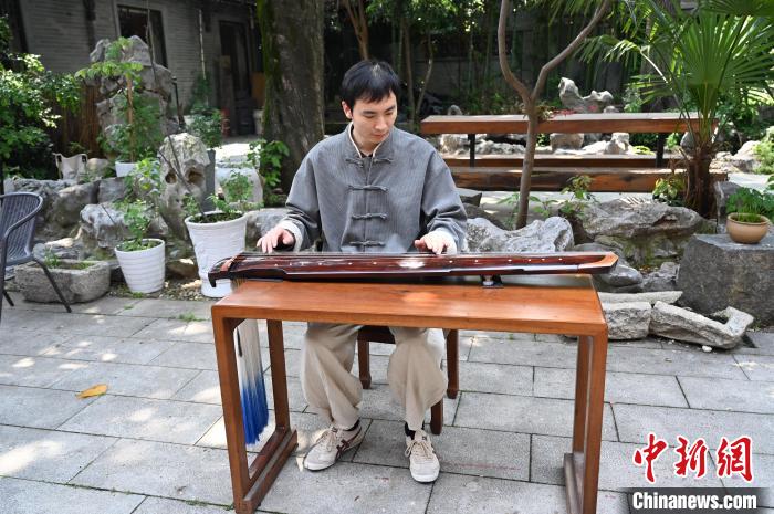 圖為古琴教師高廷鑫在江蘇揚(yáng)州仁豐里歷史文化街區(qū)的永樂琴坊彈奏古琴。國璇 攝