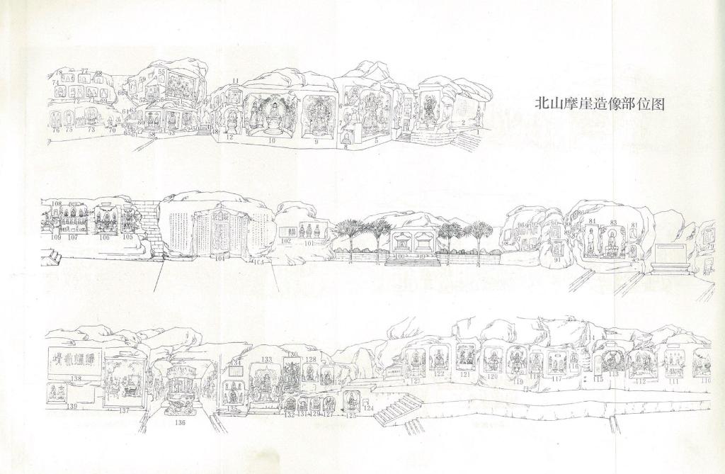 郭相穎繪制的北山摩崖造像部位圖。(大足石刻研究院供圖)
