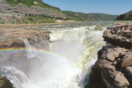 洶涌奔流的黃河水跌入龍槽,白浪翻滾,聲若雷鳴。一進入黃河壺口瀑布旅游區(qū),來自河北的游客王鑫就被“清流飛瀑”奇特景觀吸引?!疤鸷沉耍”简v向前百折不回的黃河,讓人頓生強烈的民族自豪感?!彼B連贊嘆。