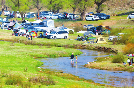 飲馬河岸邊營地林立,不少游客選擇在此放松休閑。