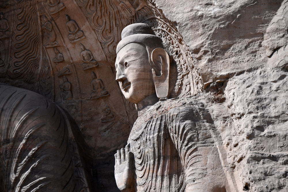 山西大同云岡石窟的佛像(2021年5月7日攝)。