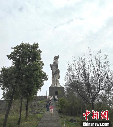 沿著山路盤旋而上,李白當(dāng)年于白兆山所寫下的詩句,恰如眼前看到的風(fēng)景。遠遠地,一座高大的雕像映入眼簾。為紀念李白,白兆山上修建了一座花崗巖李白石像:只見他左手緊握劍柄,目視遠方,似有“我本楚狂人,鳳歌笑孔丘”之豪氣。