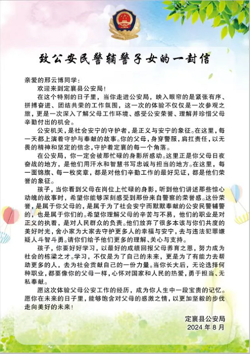 為進一步增強中小學生反詐、禁毒、交通安全意識,通過小手拉大手等形式,大力學習、宣傳、弘揚武霖同志英勇無畏、忠誠為民的高尚品質(zhì)。8月20日上午,定襄縣公安局精心策劃,組織開展了“警娃探警營”主題警營體驗日活動,50余名民輔警子女和警爸警媽共同走進警營,體驗警察生活、感受警營文化。