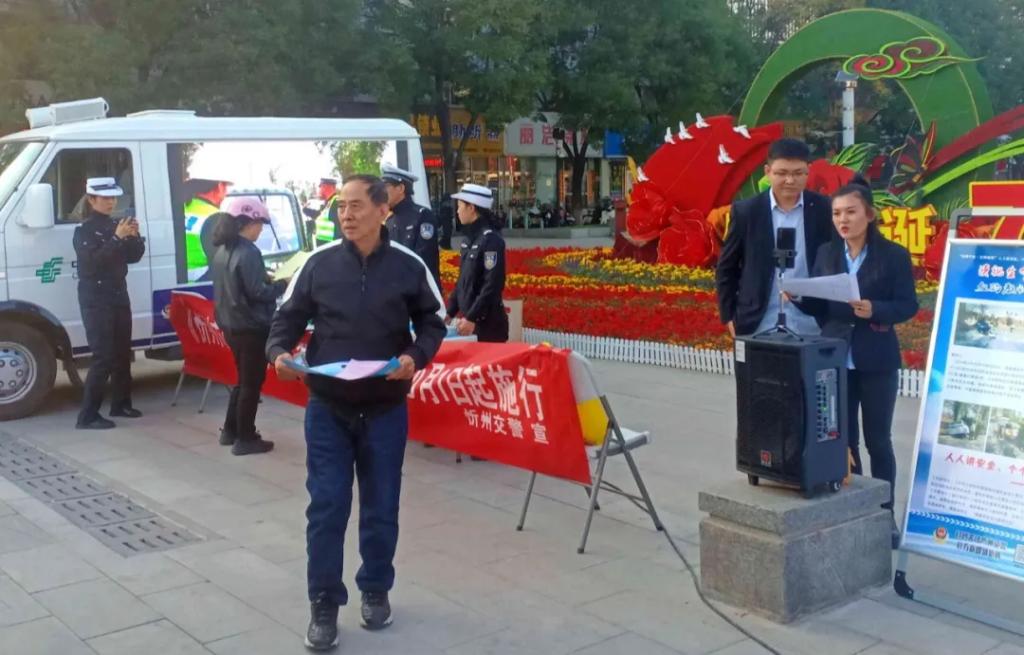 在人頭攢動的廣場上,“一盔一帶”宣傳展板、警郵直播車大屏幕吸引了過往群眾駐足觀看。“大媽,新修訂的《忻州市電動車管理條例》已于本月1日起開始施行,您知道嗎?”“大叔,您這舊的電動自行車要抓緊時間登記備案、辦理臨時牌照,咱忻府區(qū)24個警郵合作電動自行車便民登記服務(wù)網(wǎng)點都能辦理過渡期臨牌”“騎乘電動自行車必須要佩戴安全頭盔,不能闖紅燈、逆行......”