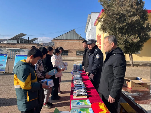 活動(dòng)中,忻州市公安局交警支隊(duì)直屬四大隊(duì)大隊(duì)長于浩軍與忻州三交煤業(yè)有限公司負(fù)責(zé)人共同化身宣傳員,向同學(xué)們講解交通安全知識,發(fā)放交通安全宣傳手冊。