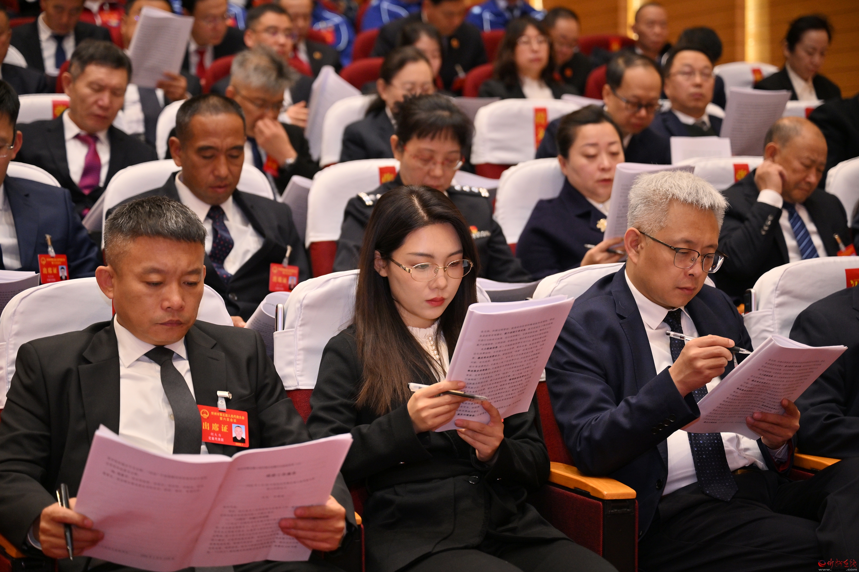 泛華會(huì)場(chǎng)內(nèi)簡(jiǎn)樸莊嚴(yán),主席臺(tái)帷幕正中的國(guó)徽在鮮艷的紅旗映襯下熠熠生輝。會(huì)場(chǎng)二樓“更加緊密地團(tuán)結(jié)在以習(xí)近平同志為核心的黨中央周圍,奮力譜寫(xiě)中國(guó)式現(xiàn)代化忻州篇章”的標(biāo)語(yǔ),提振信心、催人奮進(jìn)。