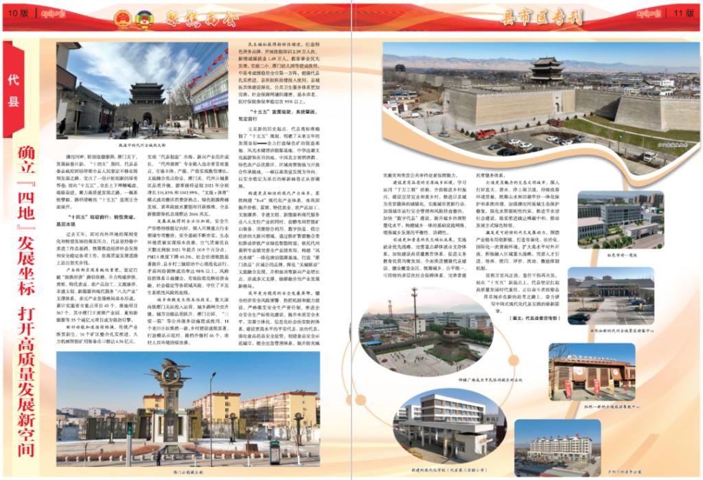 滹沱河畔,轉(zhuǎn)型浪潮澎湃;雁門(mén)關(guān)下,發(fā)展畫(huà)卷日新。“十四五”期間,代縣縣委縣政府團(tuán)結(jié)帶領(lǐng)全縣人民堅(jiān)定不移走轉(zhuǎn)型發(fā)展之路,交出了一份開(kāi)拓創(chuàng)新的厚重答卷;面向“十五五”,全縣上下殫精竭慮,砥礪奮進(jìn),聚力高質(zhì)量發(fā)展之路,一幅系統(tǒng)擘畫(huà)、路徑清晰的“十五五”藍(lán)圖正全面展開(kāi)。