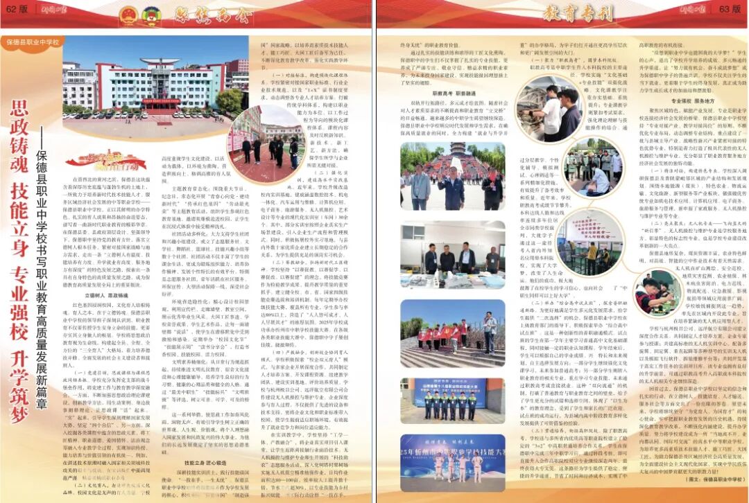 在晉西北的黃河之濱,保德縣這塊蘊(yùn)含著深厚歷史底蘊(yùn)與蓬勃生機(jī)的土地上,一所致力于培養(yǎng)新時(shí)代技術(shù)技能人才、服務(wù)區(qū)域經(jīng)濟(jì)社會(huì)發(fā)展的中等職業(yè)學(xué)校——保德縣職業(yè)中學(xué)校,正以其鮮明的辦學(xué)特色、扎實(shí)的育人成果和昂揚(yáng)的奮進(jìn)姿態(tài),譜寫著一曲新時(shí)代職業(yè)教育的精彩華章。在保德縣委、縣政府頂層設(shè)計(jì)、堅(jiān)強(qiáng)領(lǐng)導(dǎo)下,保德職中堅(jiān)持黨的教育方針,落實(shí)立德樹人根本任務(wù),緊密對(duì)接國(guó)家戰(zhàn)略與地方需求,走出一條“立德樹人有溫度、技能培養(yǎng)有力度、升學(xué)就業(yè)有高度、服務(wù)地方有深度”的特色發(fā)展之路,探索出一條具有自身特色的高質(zhì)量發(fā)展之路,成為保德教育高質(zhì)量發(fā)展全局上的重要版塊。